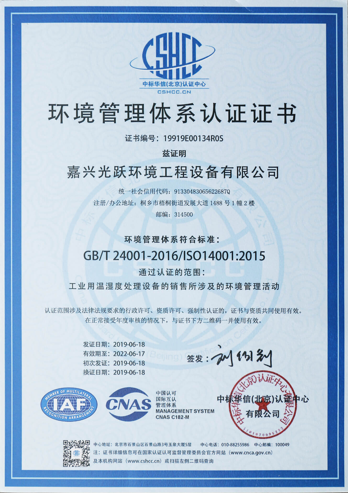通過了ISO9001、ISO14001、OHSAS18001、AAA和CE等管理體系的認證